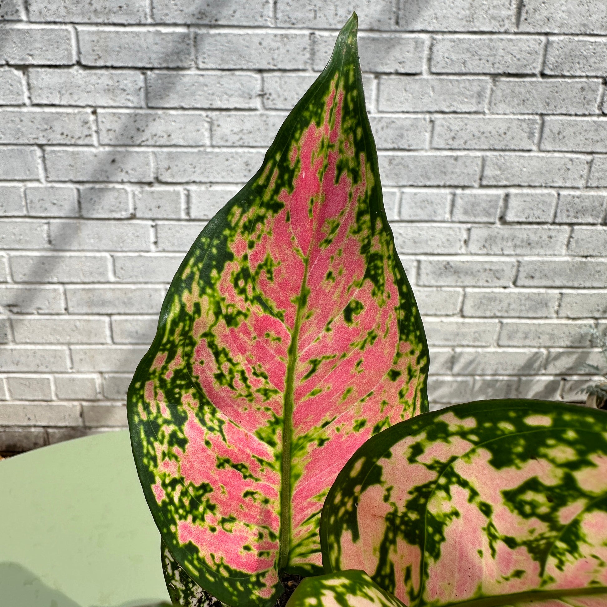 pare to fall in love with the stunning Aglaonema 'Red Valentine', also known as 'Crimson Love' or 'Jaxxy Red'. This vibrant Chinese Evergreen is a true showstopper, boasting large, glossy leaves exquisitely variegated with splashes of intense fuchsia pink and vivid red, contrasted beautifully against deep green margins. It's a remarkably easy-care plant that delivers an instant pop of dazzling colour and exotic charm to any indoor space, making it a perfect choice for adding a bold statement to your plant collection.