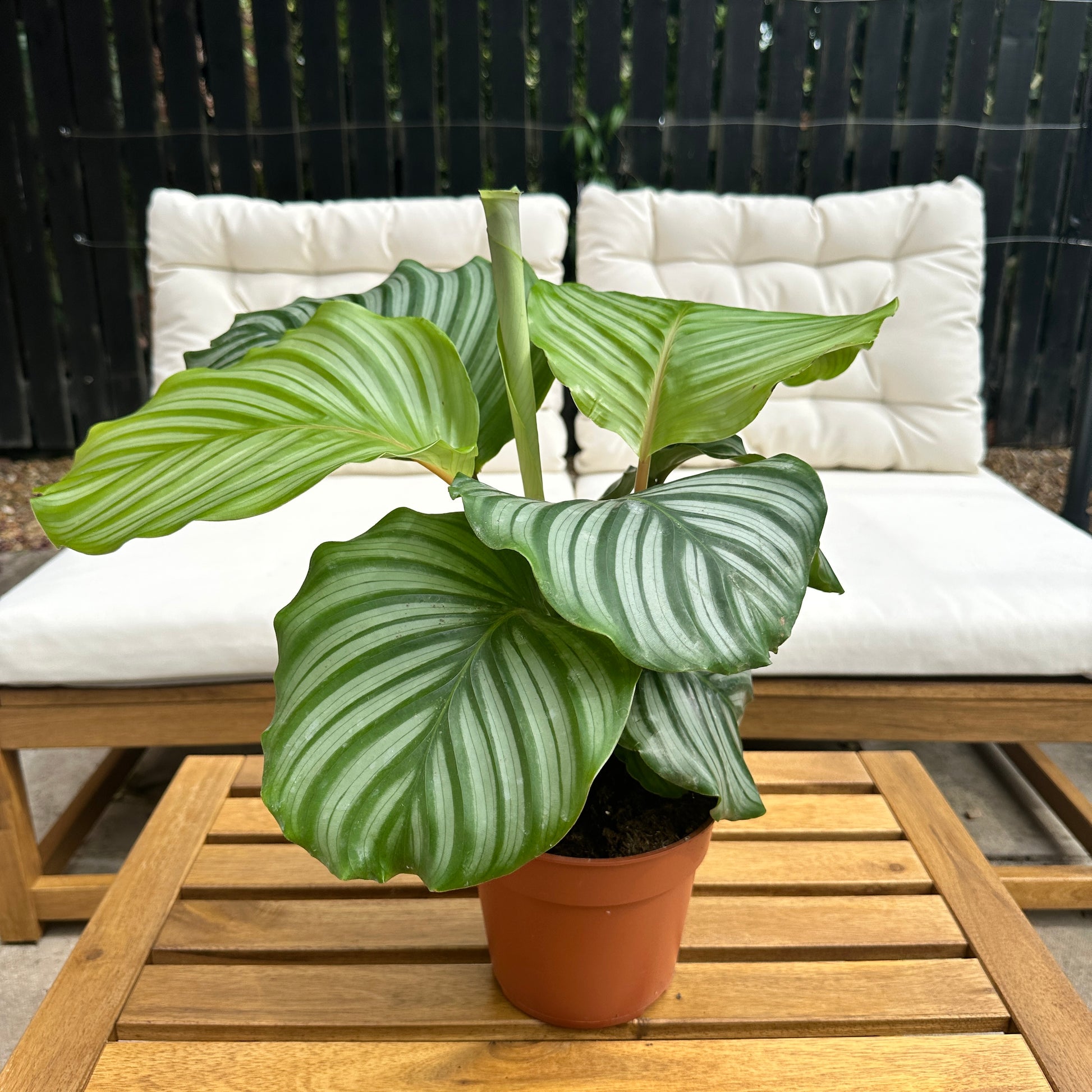 A Touch of the Tropics, Anywhere: Whether gracing a bookshelf, adding life to a side table, or becoming the centrepiece of your coffee table, the Calathea Orbifolia effortlessly elevates any space. Its elegant presence creates a vibrant and inviting atmosphere, a little slice of paradise right in your living room.