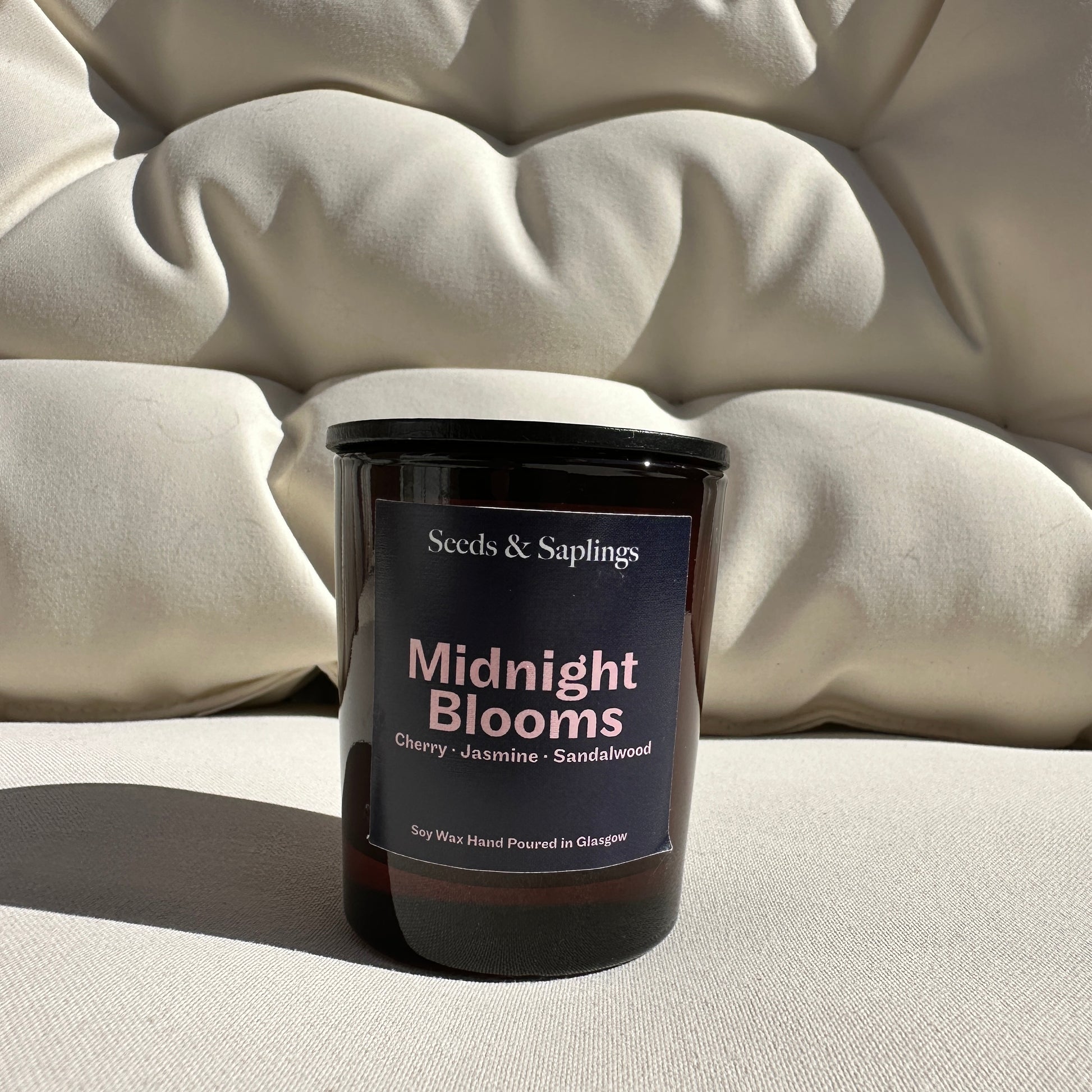 Escape into the enchanting allure of Midnight Blooms, a 9cl handmade floral scented candle lovingly created in Glasgow by Seeds & Saplings. This exquisite candle is meticulously hand-poured using natural soy wax and infused with a captivating blend of premium fragrance oils.
