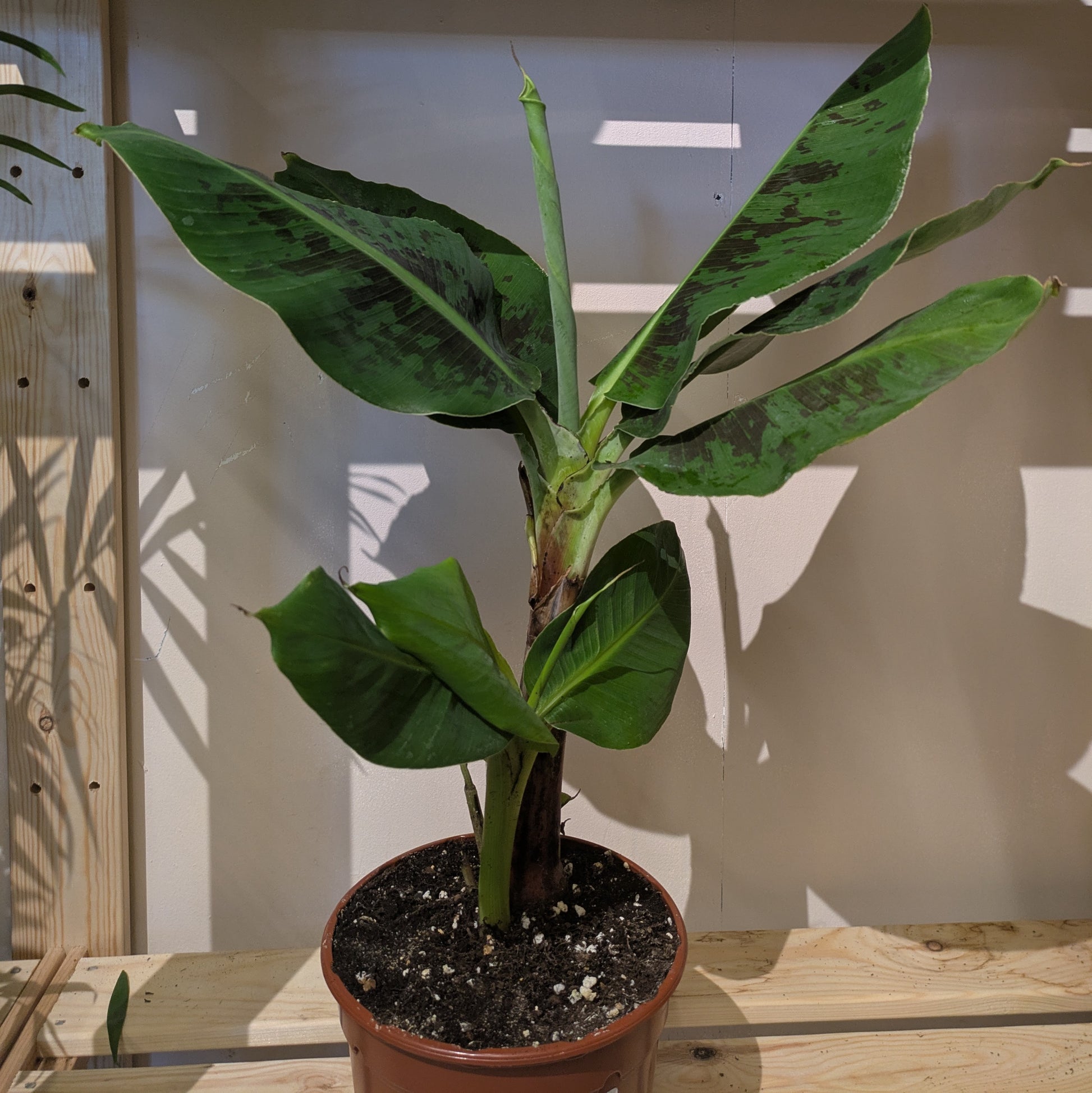 The Banana Plant loves warmth, humidity, and bright light. Keep the soil lightly moist, give it space to grow, and it’ll reward you with fast, exuberant foliage.