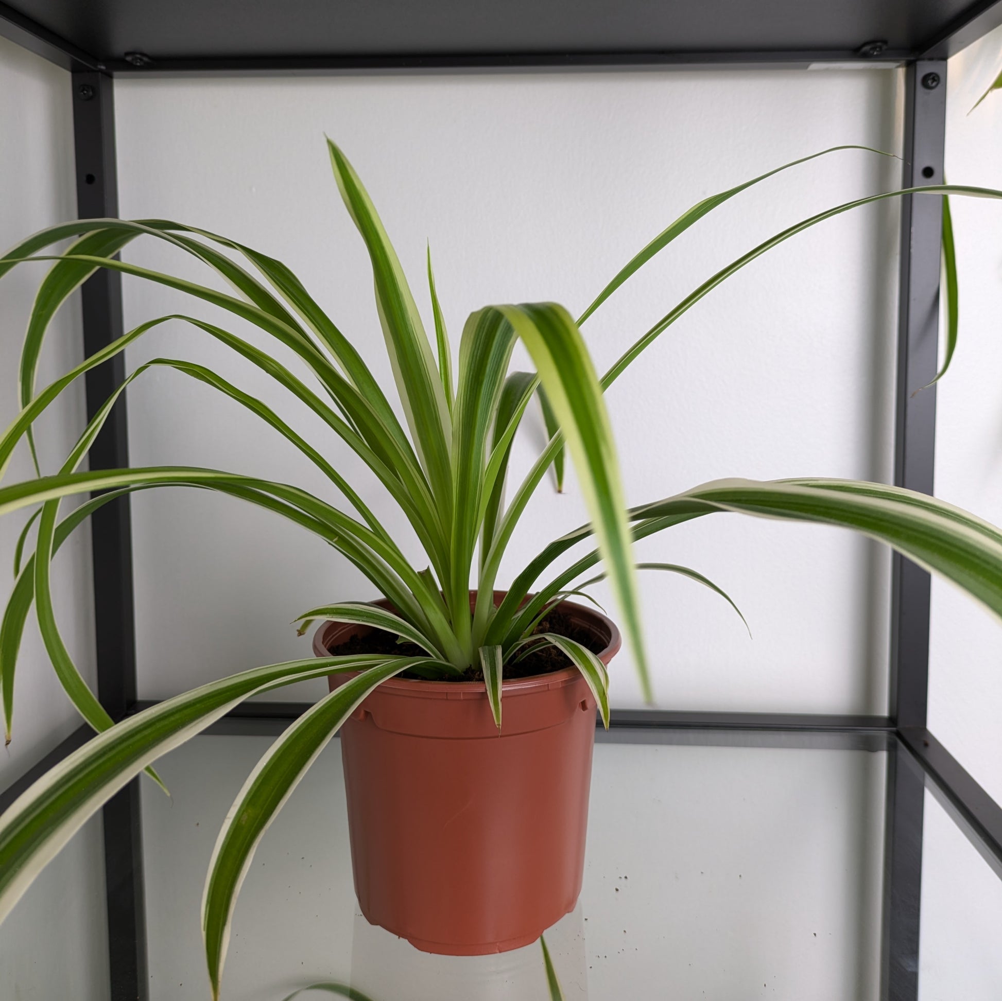 The perfect starter houseplant, it is easy to grow, tolerant to neglect but will thrive with proper care. It has brightly variegated, long-stem foliage which will get bigger and better with time. Perfect for hanging plant pots or in a tall plant pot long term. When mature, the plant will produce long stems with flowers and baby plants at their tips. I raised these myself from babies and have looked after them with great care.