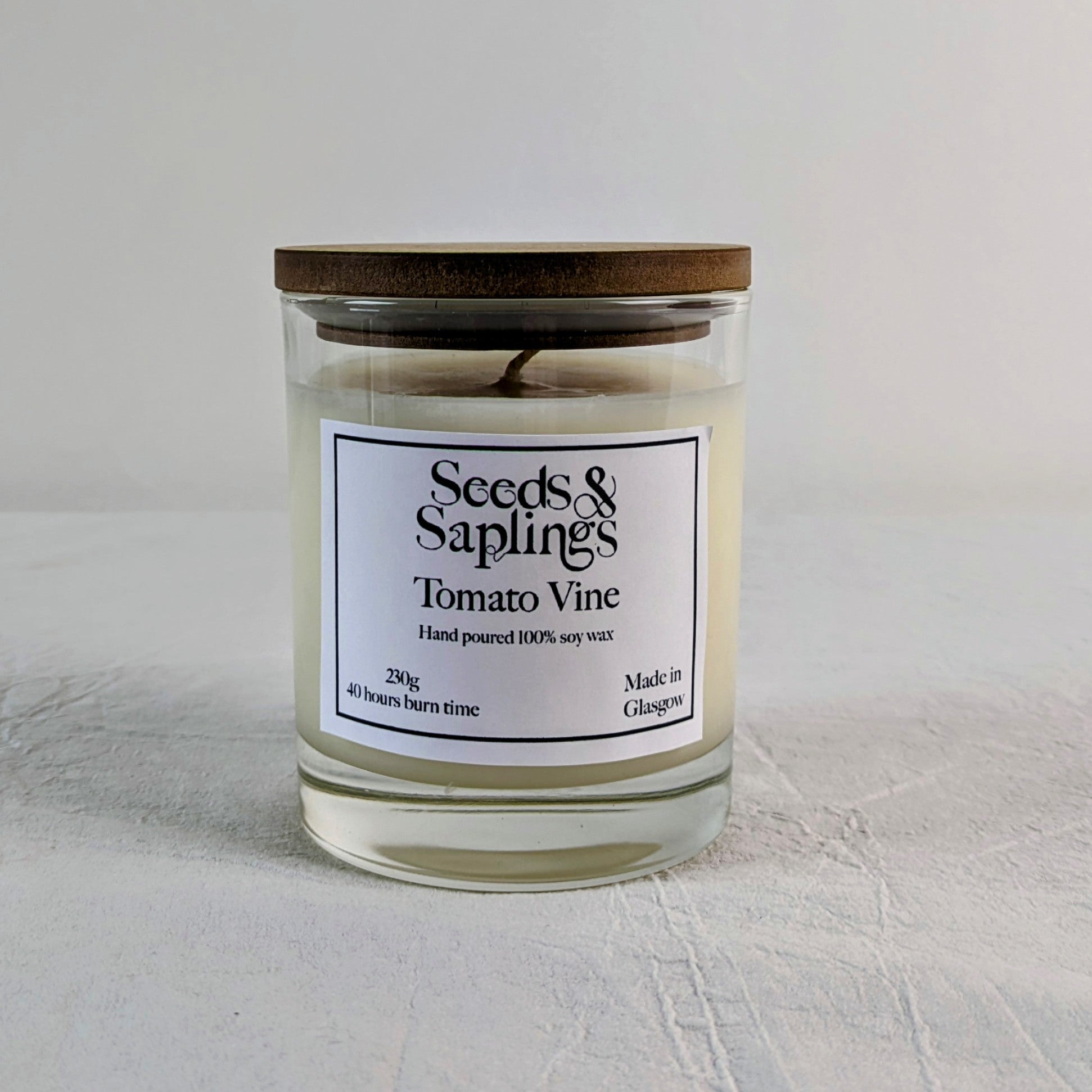 Evokes the image of opening a greenhouse door to start searching for ripe tomatoes among the bursting leafy green of the vines. The candle is provided with a wooden lid to ensure the fragrance stays powerful and the candle stays clean between uses.
